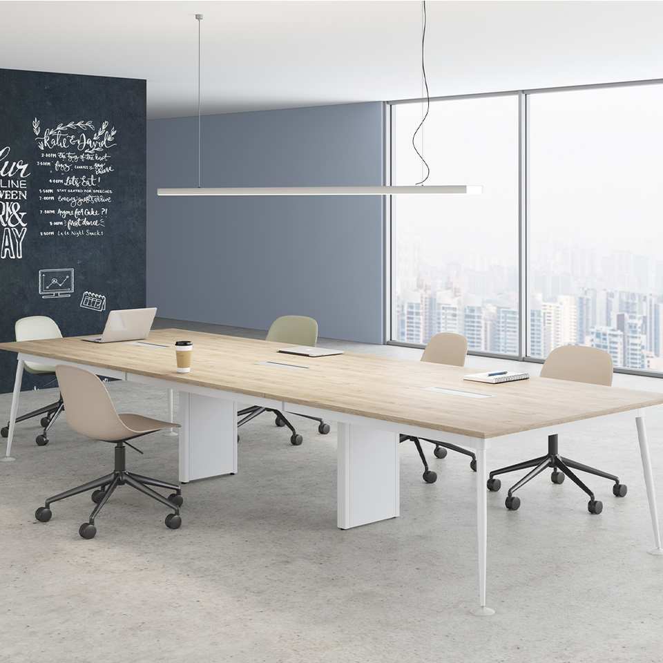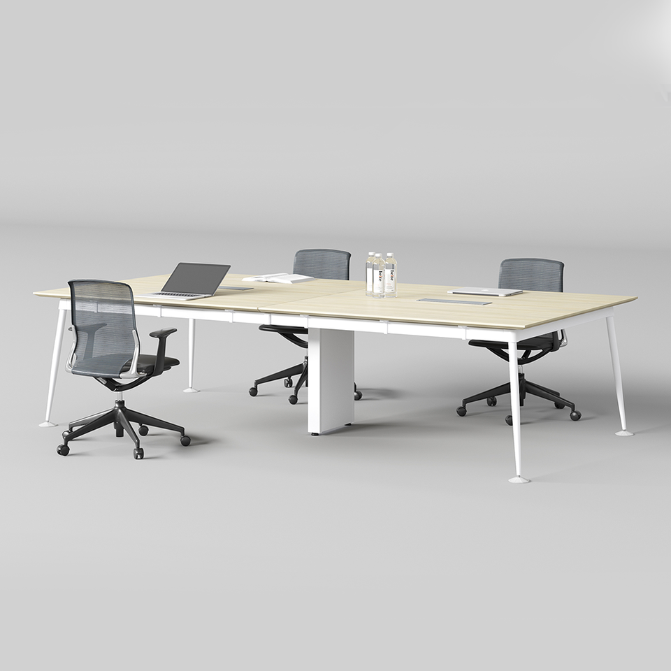 Lar » Produtos » Monta de reuniões » Mesa de reuniões personalizadas de madeira moderna de madeira sólida e de aço para salas de reuniões executivas e espaços corporativos
